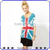 2013 High Fashion Design Women Half Sleeve Tops and Blouse Oversized Union Jack T-Shirt Blouse Print Front Shkz88
