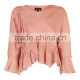 2016 Fashion and Elegant Design Flare Sleeve Women Tops and Blouses Custom