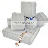 High End Gray Velvet Wholesale Custom LOGO Print Jewelry Box for Necklace Earrings Ring Bracelets