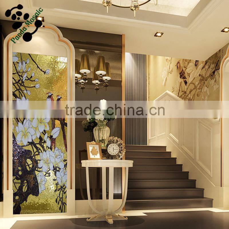 SMM03 100% Glass Hanging Mosaic Wall Pictures for Living Room Golden Wallpaper Pattern