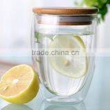 Double Borosilicate Wall Glass Cup With Bamboo Lid