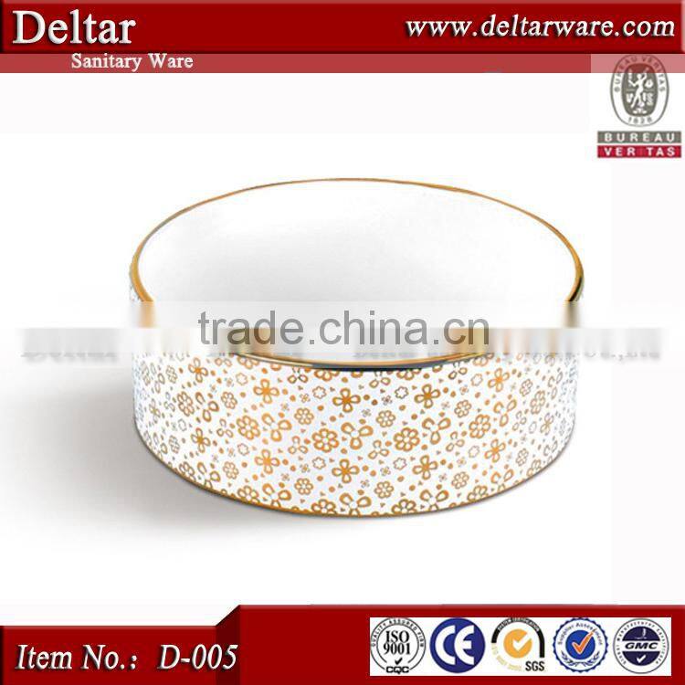 Hot Sale Wash Basin Price, Bathroom Basin With Gold Decorative, Vanity Bathroom Sink