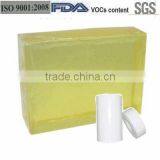1.Weight:6.25 kgs one piece, four pieces one /carton, about 25kgs 2.Package: package with release paper 3.Colour:light yellow 4.Brand: Jaour HotMelt 5.Odor: Inodorous 6.Toxicity:Non-toxic 7.usage :label sticker ,brand ,sign and so on 8.Production Time: 2-4 for 20 feet container 9.terms of payment :T/T ,L/C 10.quality guarantee: equipped with advanced modern production lines and supporting ancillary facilities, high quality and best price can be given as you wish