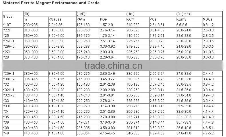Sintered Ferrite is sintering magnetic materials. Main Components are SrO or BaO and Fe2o3, According to different processing technology , it can be divided into isotropic and anisotropic. Isotropic magnet has lower property, but it can be magnetized through to every side of magnet; anisotropic magnet has higher property, but they only can magnetize through predesigned magnet size.