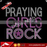 Praying Girls Rock Rhinestone Iron on T Shirt Transfer