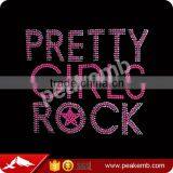 Wholesale Iron on Rhinestone Heat Transfer Pretty Girls Rock Rhinestone Motif for Women T Shirt