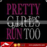 Hot Sale Pretty Girls Run Too Hot Fix Rhinestone Iron on Transfer for Garment