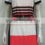 PRETTY STEPS Knee Length O Neck Short Sleeves Simple Assorted Colors Stripe Summer Dresses for Women