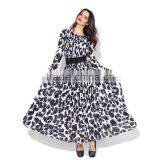 Pretty Steps 2015 Wholesale China Casual Long Sleeve Black Animal Printed Maxi Dress on Sale With Big Big Hem