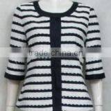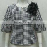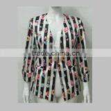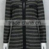 Pretty Steps 2015 Women Apparel All-weather Suit White /blcak Stripe Cardigan Coat Women Formal Blouse Designs