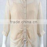 Pretty Steps 2014 Lady New Design Nude Chiffon Blouse
