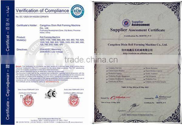 Our enterprise, Cangzhou Dixin Roll Forming Machine Co., Ltd, as the professional and leading manufacturer, can manufacture, design, installation and debug various roll forming machines and metal processing sheet equipments, which produce metal roof wall panel, glazed roof tile, CZ steel purlin, floor decking, roof ridge cap, sandwich panel, roof truss, shutter panel, shutter slat, door frame, guardrail, and metal sheet uncoiler, bending, slitting, cutting, flattening, punching, crimping.