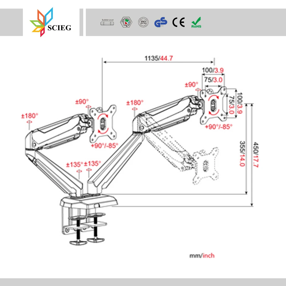 Gas Spring Dual Monitor Arm Monitor Mount Vesa Desk Mount