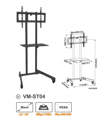 - Big Size Thickness Strong Movable Adjustable Shelf Mobile LCD LED TV Cart Rolling Trolley Black White Gold tv Stand