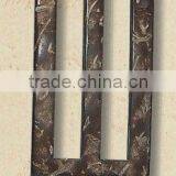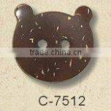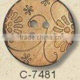 They are the shells of coconuts with a hard and delicate texture.The hard shell of a palm-tree nut should polish professionally.After the fibrous coating of the nut has been removed,the fine cream-color spots lift in the dark brown shell add to the natural beauty of the material .Buttons of this material are cut into all kinds of forms.Such as round,oval,square and realistic shapes,which ,after polishing,give out natural lustec.Picutres can also be carved on it by machine or hand.