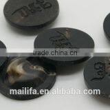 High Quality Logo Engraved On Dark Brown Buffalo Horn Buttons for Suit, Jacket, Sweater