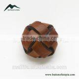 High Quality Round Light Brown Real Leather Chinese Knot Button With Metal Shank for Woman's Garments Coat Sweater