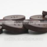 Dark Brown Oval Shape 2 Holes Real Leather Label Button