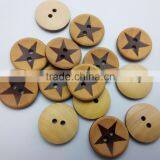 36L(23mm) Natural High Quality Brown Wood Button Painted Star Laser Engraving on