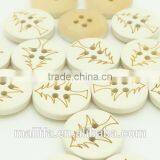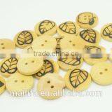 2 Holes High Quality Natural Wood Button With Leaf Figure Printed On