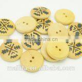 2 Holes High Quality Natural Wood Button With Figure Printed On
