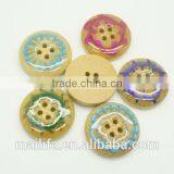 Fancy High Quality Colorful 4 Holes Figure Painted& Oiled on Wood Button