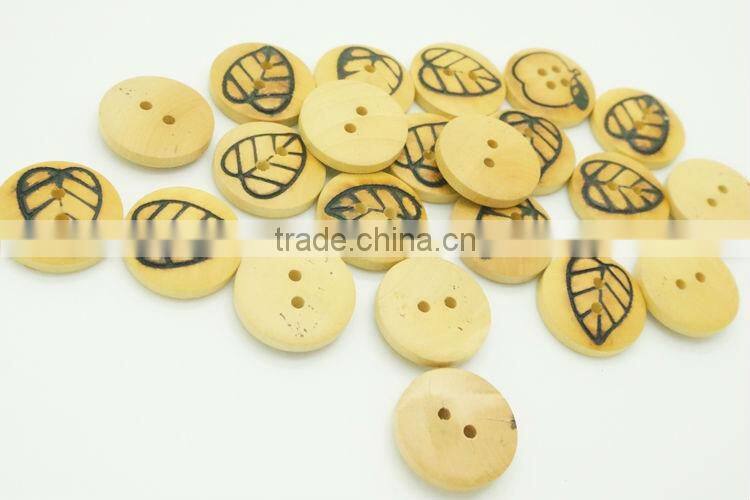 2 Holes High Quality Natural Wood Button With Leaf Figure Printed On