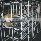 The material handling equipment is made up of coated pipes,metal joints,metal and plastic attachment,which is light,flexible,making the installation,adjustment,modifacation,and take-down to be easy.