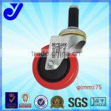 JY-305|3 Inch Bearing Swivel Red Polyurethane Double Brake Heavy Duty Casters and Wheels