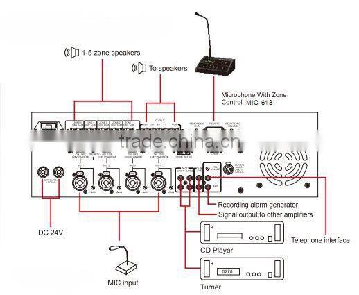 MIC-618 is remote control microphone to work with MA-120S/MA-240S/MA-350S 5 zone mixer amplifier for remote zone control.Features of 1km remote distance control and zone paging and priority over others input.