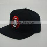 Customized Flat Bill Hip Pop Fashion Black 3d Embroidery Snapback Cap