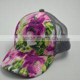 Custom Cheap Flowers Printed Mesh Trucker Cap