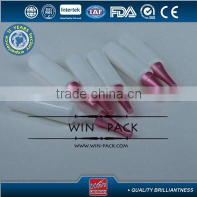 packing of white cosmetic tubes with long pink caps,cosmetic tubes packaging,plastic tube with screw cap :