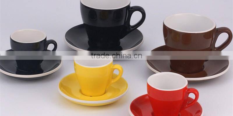 200cc Yellow Color Glazed Decal Logo Printable Customized Ceramic Cup & Saucer Set