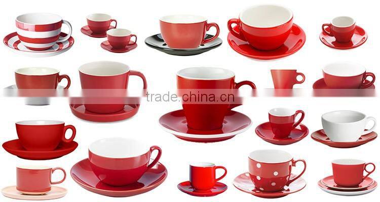 200cc Red Color Glazed Decal Logo Printable Customized Ceramics Coffee Cup Saucer