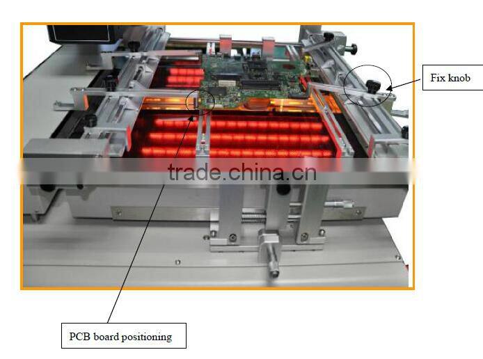 3) Bottom IR preheat - Prevent PCB board deforming ,and we use import IR wave gilding heater plate with high temperature glass,temperature increasing and decreasing rapidly ,it can protect PCB board from deformation and ensure repair effect .