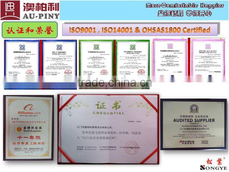 | Songye Office Furniture Co., Ltd., was established in 1986. From the start of our business, we are only specializing on school furniture all along the 30+ years. Day by day, we started to know and traded with many many successful businessmen from different countries and we became good friends since then. In 2008, due to the progressive expansion of our business, we built and relocated our factory to the current location where most of you might have already been. At the same time, a new name “AU-PINY”was given to our factory and we kept“SONGYE”as a registered trademark till now. |