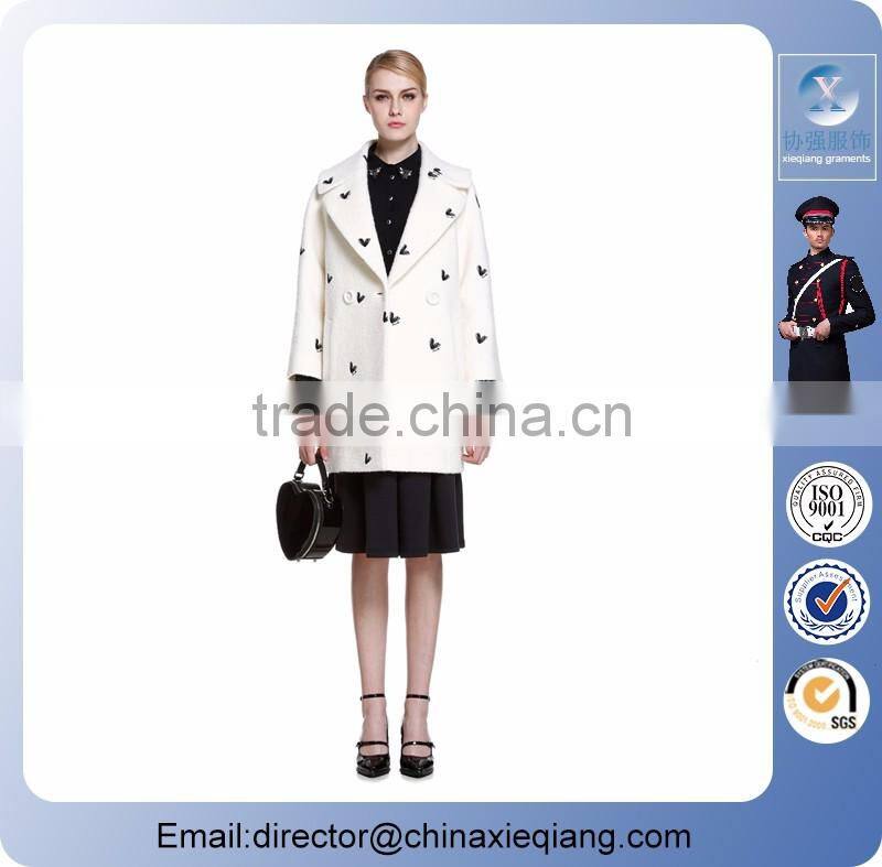 2016 Fashion Ladies Double Breasted Coat Emborided Winter Coat for Women
