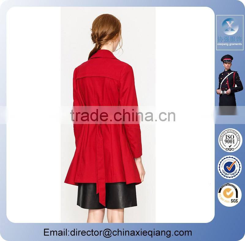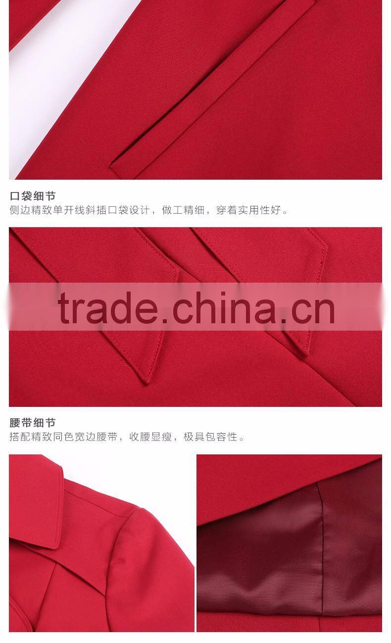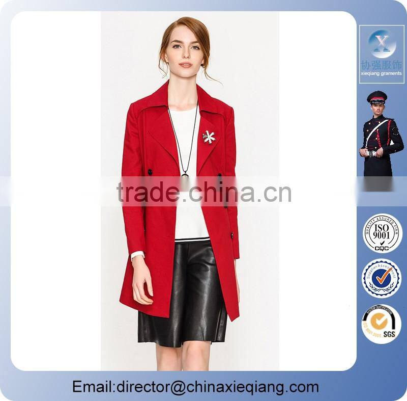 2016 Fashion Belted Trench Red Coat for Women