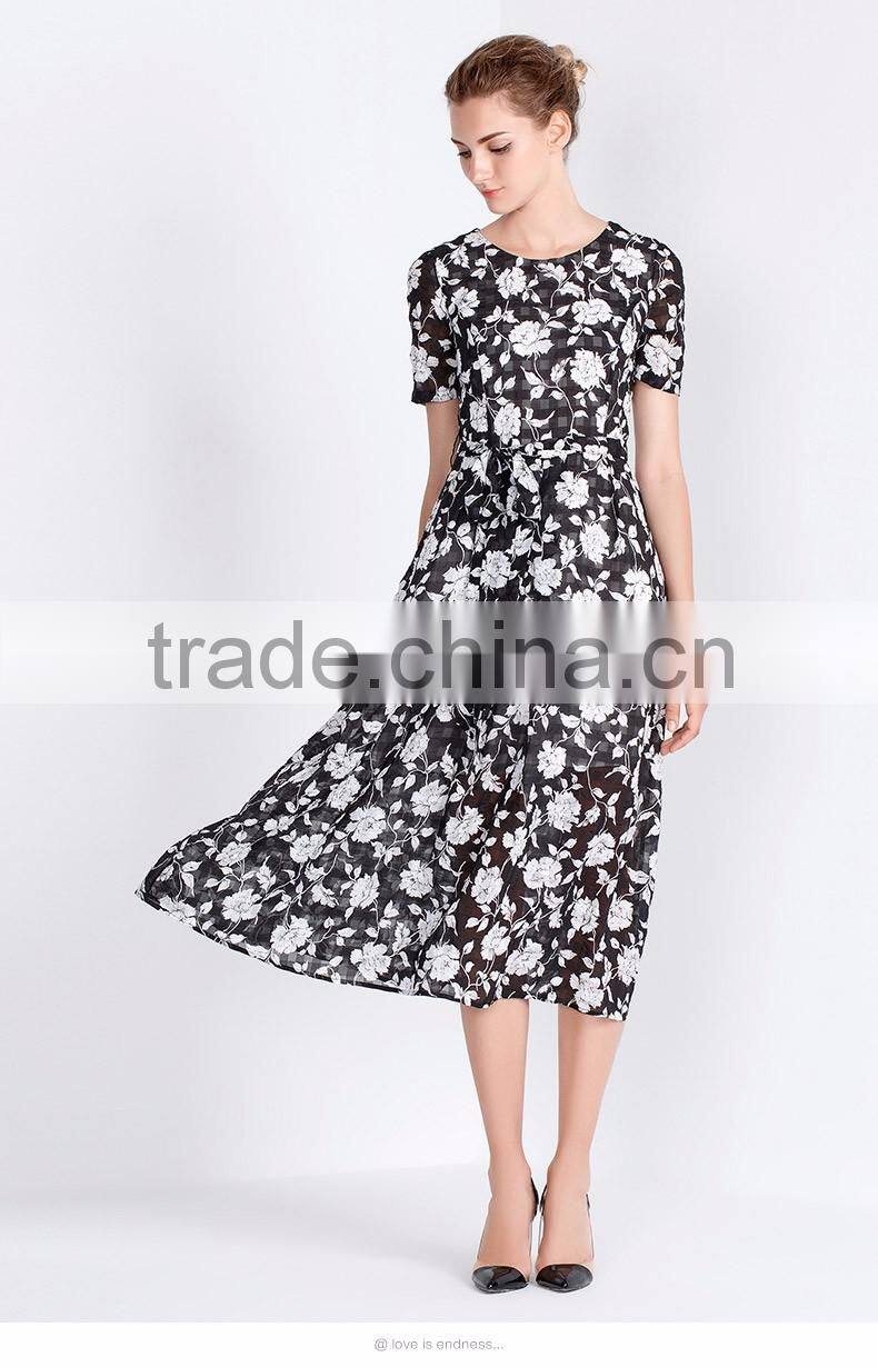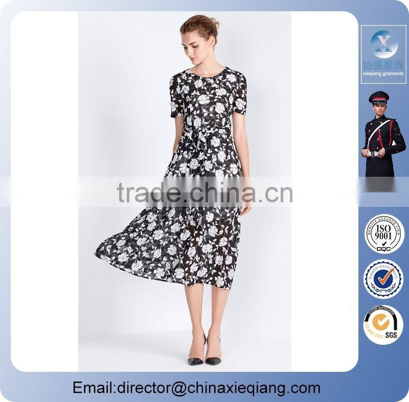 2016 Fashion Ladies Casual Pleated Dress Floral Dress for Women