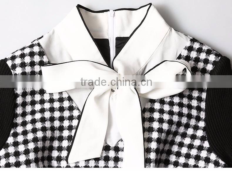 2016 Fashion Ladies O-neck Woolen Splicing Chiffon Dress Winter Dress for Women