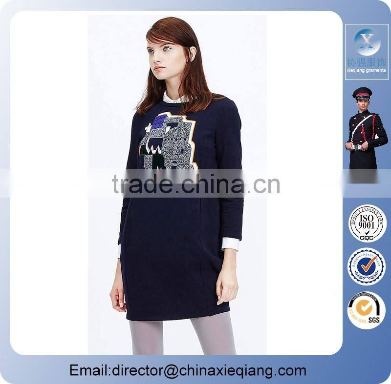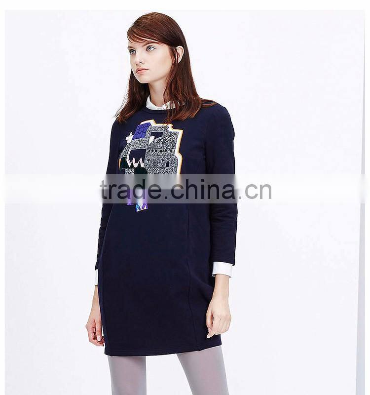 2016 Fashion Ladies Long Sleeve Flower Embroidered Dress