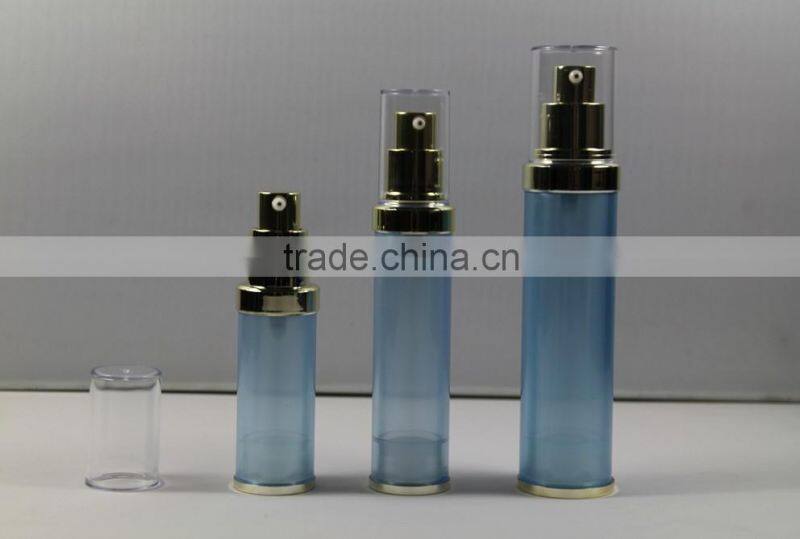 Color: light blue bottle and aluminum airless pump and aluminum bottom with transparent overcap