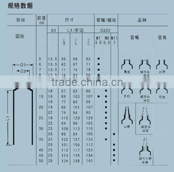 Aluminum and Plastic Food Cosmetic Packaging Tubes