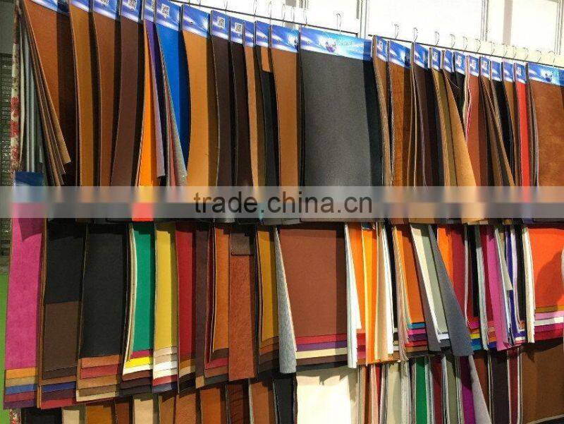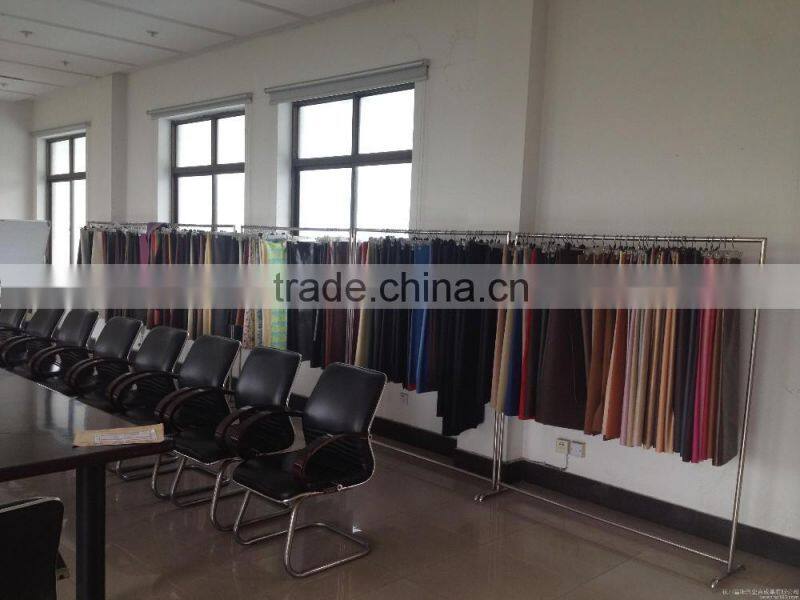 A.B Raw materials are conveyed to injection head on the rack truck’s by the filter metering pump, the injection head moves back and forth on the patterned paper at a constant speed , scraper on the assembly line’s scrapes the materials into film, and then heating the film into foam, which will be laminated with the base material( Split Bonded Leather, Substrate leather or Other Material) when the PU foam present a stringy state , the compression roller grinds them into a synthetic, at last, the PU leather will be separated on the assembly line after heating and shaping in drying oven.