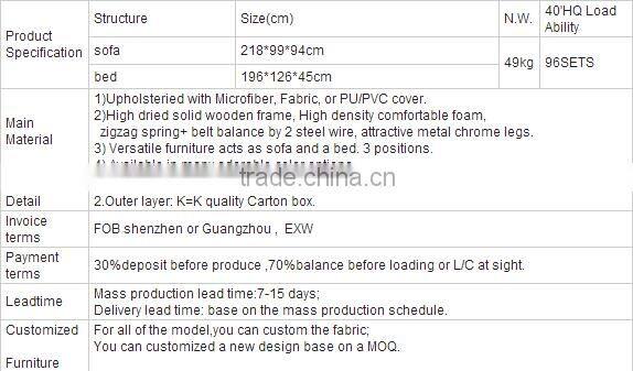 2016 Hot Selling Modern Fabric Folding Sofa Cum Bed With Metal Leg