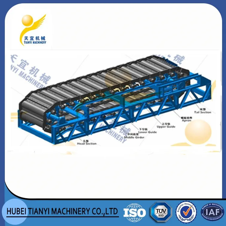 1 Apron conveyor is a kind of slat conveyor, widely used in mine, metallurgy, cement etc.