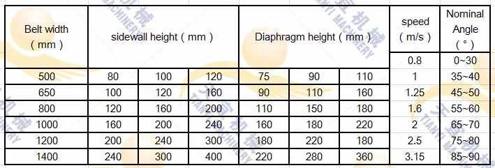 DJ Series Large Angle Corrugated Sidewall Belt Conveyor, with the wavy guard and diaphragm plate belt, it especially suit for large inclination conveying (the max. inclination angle can up to 90°, and the biggest conveying material particle size is 300 mm).It is widely used in electric power, chemical industry, metallurgy, mining, coal, grain, ports, building materials, light industry and other industries. According to the transportation technology request, it can be worked by one or more machines, or work with other conveying equipments in horizontal or inclined conveying system. It can used for transporting of loose materials which density is 0.5 t/m³ ~ 2.5t/m³ and packed products.
