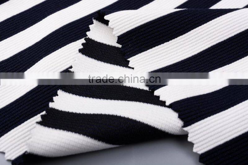 New Products 2017 Polyester Spandex Yarn Dyed Stripe Rib Knit Fabric