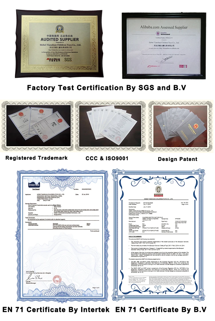We are 18 years professional manufacturer for children car toys,6 years gold Assessed Supplier on Alibaba.We have passed the certification by SGS and B.V.
